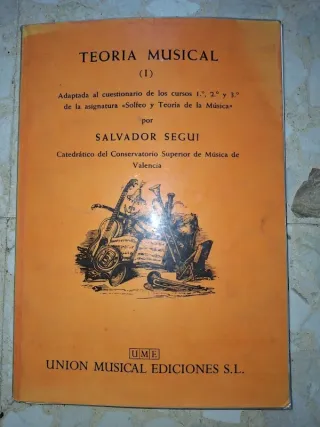 Libro de Teoría Musical (I) adaptado al cuestionario de los cursos 1.º, 2.º y 3.º de la asignatura «Solfeo y Teoría de la Música». Escrito por Salvador Seguí, Catedrático del Conservatorio Superior de Música de Valencia. - Publicado por Unión Musical Ediciones S.L. - Contiene ilustraciones de instrumentos musicales y partituras.