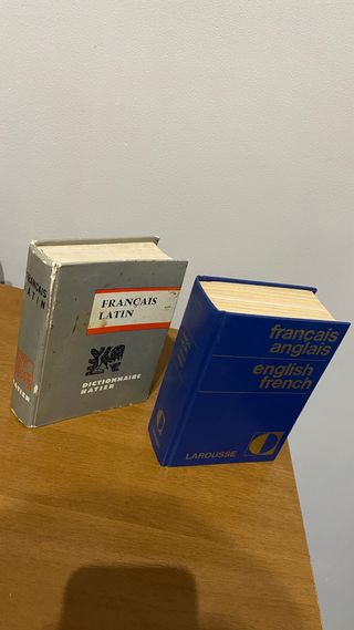 Diccionario Larousse Francés-Inglés (medidas ancho 10,7cm x alto 15,1cm y grosor 5cm). Diccionario Hatier Francés-Latín (medidas 11,3cm, alto 15cm t grosor 3,5cm). Usados y años guardados. Sólo lo ha usado una persona.