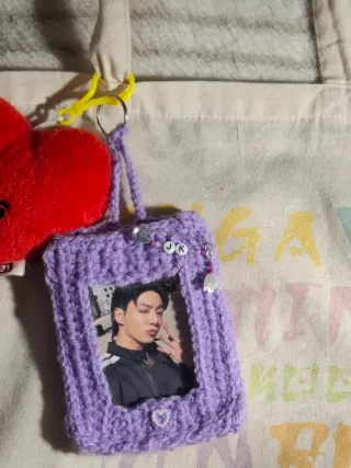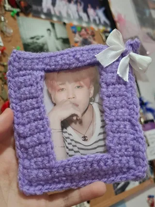 Porta photocards crochet hecho a mano , perfecto para decorar tu cuarto 💜 Más cosas de bts en mi perfil, échales un ojo 👀 ‼️Si compras más de 4 cosas de mi perfil se rebaja el precio a todo lo q compres ‼️ Hago entrega en mano en plaza Castilla madrid y envíos a todos lados