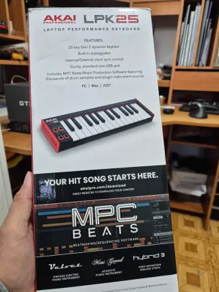 Teclado controlador AKAI LPK25 con 25 teclas dinámicas. - Teclado de 25 teclas Gen 2 dinámicas. - Arpegiador integrado. - Control de sincronización de reloj interno/externo. - Conexión USB robusta y de tamaño estándar. - Incluye software MPC Beats Music Production.