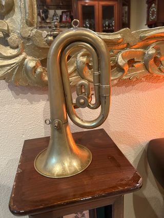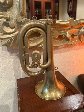 Corneta de latón con acabado brillante. - Tono: Do/Re. - Diseño clásico de instrumento de viento.