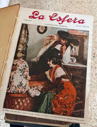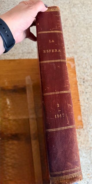 1 volumen encuadernado de la revista ilustrada española "La Esfera" correspondiente al año 1917. "La Esfera" fue una revista de lujo y cultural muy prestigiosa, publicada en Madrid entre 1914 y 1931 por la editorial Prensa Gráfica. Se caracterizó por su alta calidad gráfica, con excelentes grabados, ilustraciones y fotografías, y por sus colaboradores literarios de renombre, como Miguel de Unamuno y Emilia Pardo Bazán. Abarcaba una gran variedad de temas, incluyendo actualidad nacional e internacional, arte, historia, viajes, moda y deportes. Era una publicación cara para su época, lo que contribuía a su prestigio y exclusividad