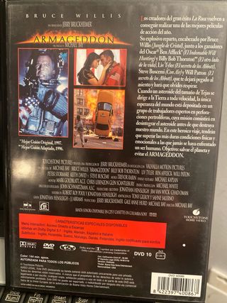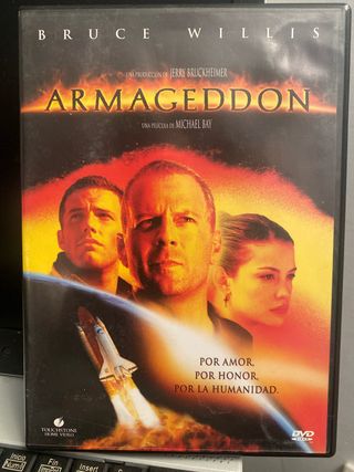 Película Armageddon en formato DVD. - Protagonizada por Bruce Willis. - Incluye audio en inglés y español. - Género: Acción, Aventura y Ciencia Ficción.