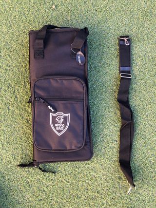 Bolsa de la marca Strong Bag, de color negro, para baquetas, con bolsillo frontal y correa. - Nueva. - Material resistente. - Cierre de cremallera. - Correa de hombro ajustable.