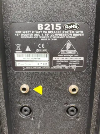 Vendo pareja de altavoces Behringer B215 pasivos, en muy buen estado y funcionando perfectamente. Recogida en Barcelona, zona Clot. Cada unidad es de 15” ( woofer), 8 ohmios y 600 W máx. (potencia pico). ⚠️ Son altavoces pasivos, por lo que necesitan etapa de potencia externa (no llevan amplificador incorporado). Se pueden usar por separado o los dos en estéreo. Cajas muy robustas. Medidas aproximadas por unidad: 70 x 45 x 34 cm. Peso: unos 17 kg cada uno. Puedo venderlos por separado, a 125 €.