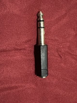 Adaptador para conectar dispositivos de audio. Permite la conexión de un jack de 6.35mm macho a una entrada de mini-jack de 3.5mm hembra. Uso: Guitarra, teclado, amplificador Hi-Fi, monitores de estudio.. - Conector de entrada: 3.5mm hembra. - Conector de salida: 6.35mm macho. Entrega en mano. Hago envíos a partir de 5€ Tengo más cables de audio y video en mi perfil
