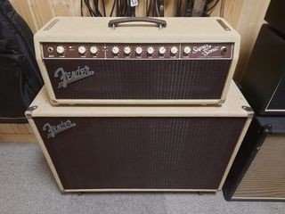 Amplificador de guitarra Fender Super-Sonic 22. Todo a válvulas. Made in USA. Cabezal y pantalla 2x12". No se vende por separado. Ligeros roces y desperfectos estéticos. Perfecto estado de sonido. Se incluye pedal footswitch y fundas protectoras originales. Podria valorar un cambio por el mismo modelo pero en combo 1x12". Tambien podria valorar una Les Paul o Telecaster que me interese. Gracias.