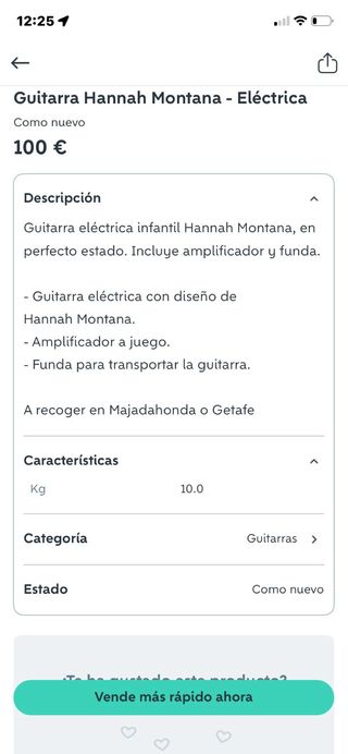 Guitarra eléctrica infantil Hannah Montana, en perfecto estado. Incluye amplificador y funda. - Guitarra eléctrica con diseño de Hannah Montana. - Amplificador a juego. - Funda para transportar la guitarra. A recoger en Majadahonda o Getafe