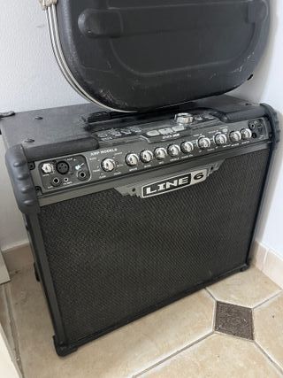 Se vende guitarra eléctrica con funda y amplificador Line 6. - Guitarra eléctrica con acabado sunburst. - Amplificador Line 6. - Funda para guitarra incluida.