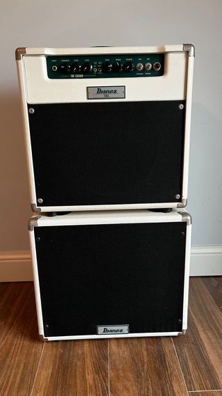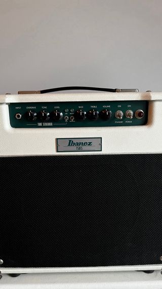 Amplificador combo de válvulas Ibanez TSA15H. Ampli muy limpio a valvulas modificadas a Ruby que es muy buena base para efectos. Tiene un tube screamer integrado pero lo tengo bypasseado ahora mismo. Siempre en casa, lo vendo porque me mudo a un piso muy pequeño en el que no le puedo dar uso. Lo vendo solo pero lo solia usar con la pantalla de la primera foto para conseguir sonido stereo 2x12. Conos celestion seventy 80. Puedo hacer precio por ampli y pantalla juntos - Diseño clásico en color blanco. - Rejilla frontal negra. - Placa metálica con el logo de Ibanez.