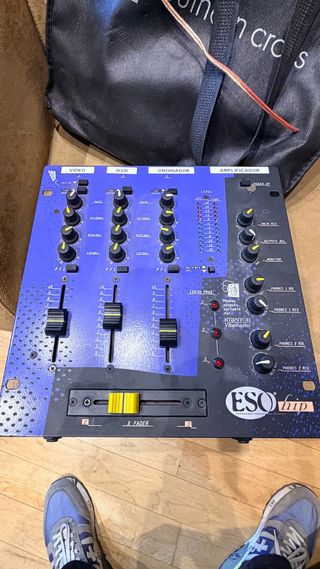 Mesa de mezclas Stanton Vibemaster con X-Fader. - Entradas: Video, DVD, Ordenador. - Amplificador. - Salidas: Outputs Bal, Monitor, Phones 1 Mix, Phones 2 Mix. - Controles de nivel y ganancia.
