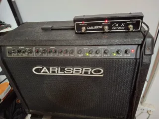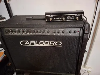 Amplificador de guitarra eléctrica Carlsbro GLX 80. - Fabricado en Inglaterra. - Altavoz Celestion G12T-80. - Conexiones: Line Out, Pre Amp Out, Power Amp In (Active), Foot Switch, FX Send, FX Return. - Entrada para auriculares (Head Phones). - Interruptor de encendido/apagado (ON/OFF). - Conector de alimentación IEC.