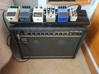 Vendo este amplificador en perfecto estado, siempre ha estado en home-studio y muy mimado. Conservo todos los papeles y cables originales. Se puede ver y probar en Palma. Características: -Altavoz 12", potencia 75-90W -Ecualizador 3 bandas -Entradas de baja y alta impedancia (para pasivo y activo) -Salida DI -Entrada auxiliar Jack 3.5mm con volumen independiente -Conexión auriculares Jack 3.5mm -Canal Clean + Canal Drive Precio algo negociable. Vendo por mudanza.