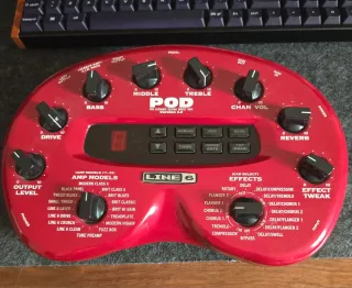 Procesador de efectos y amplificador de guitarra Line 6 Pod 2.0. Muy cuidado. Presenta signos de uso menores, se le ha dado cariño y un uso normal - Controles de Drive, Bass, Middle, Treble, Reverb, y Channel Volume. - Pantalla digital para selección de presets. - Botones para Manual, MIDI, Save, Tuner, Noise Gate, y Tap (Hold). - Selector de modelos de amplificador (Amp Models). - Selector de efectos (Effects). - Conexiones de entrada y salida. Cualquier duda, pregunta sin problema.