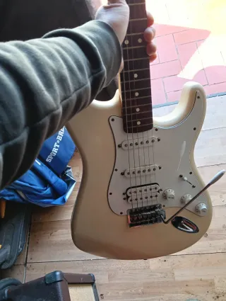 Guitarra eléctrica en perfecto estado. Incluye amplificador, funda y soporte de la guitarra.