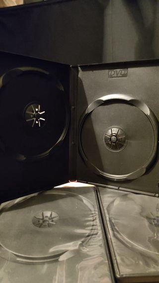 Pack de cajas negras para CD o DVD. Dobles. Perfectas para organizar tu colección. - Color: Negro. - Material: Plástico. Se vende el pack de 28 unidades completo