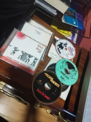 Conjunto de CDs variados. - CD Riau Riau 2005 de Alfredo y sus Amigos. - CD Lucrecia. - CD Pacto de Sangre de Tigres del Norte. - CD Major Lazer.