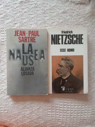 2 libros por 1€ en total. La NAUSEA está en buen estado, pero Ecce Homo tiene algunas páginas subrayadas.