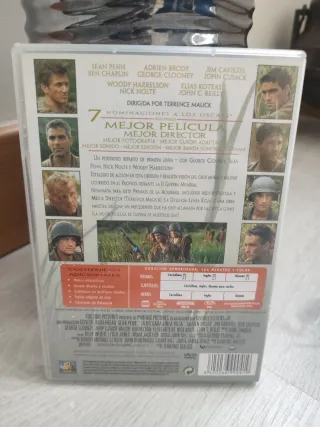 Película La Delgada Línea Roja en formato DVD. - Dirigida por Terrence Malick. - Nominada a 7 premios Oscar, incluyendo Mejor Película.