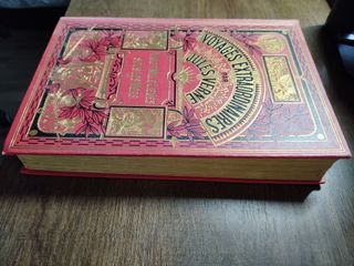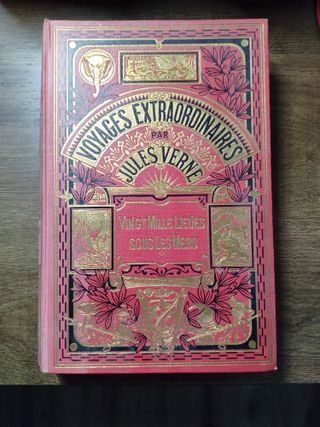 Voyages Extraordinaires. VINGT MILLE LIEVES - SOUS LES MERS Jules Verne. Première édition, couverture rigide. Collection Hetzel, 1920. Viajes extraordinarios. Veinte mil leguas de viaje submarino. Julio Verne. Primera edición, tapa dura. Colección Hetzel, 1920. Ilustraciones por L. Benett, vistas fotográficas (coloreadas). 492pp. 28x19,5cm. Preciosa encuadernación en tela editorial con estampaciones en negro y dorado. Profusión de ilustraciones en b/n. En muy buen estado. Illustrations de L. Benett, vues photographiques (en couleurs). Belle reliure d'éditeur en toile avec marquage à chaud noir et or. Nombreuses illustrations en noir