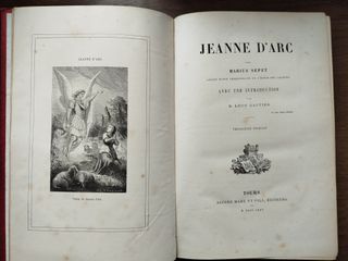 Jeanne d'Arc, Marius Sepet Mame 1875 Illustré. Juana de Arco, Marius Sepet Mame 1875 Ilustrada. En francés. Obra de Marius Sepet, con introducción de Léon Gautier. Tours, año 1875. 334 páginas, 26x18 cm, cantos dorados. Estado Normal (con señales de uso normal). Algo deslucido y manchas puntuales (ver fotos). En français. Ouvrage de Marius Sepet, avec une introduction de Léon Gautier. Tours, 1875. 334 pages, 26 x 18 cm, tranches dorées. État correct (traces d'usage normales). Quelques usures et petites taches (voir photos).