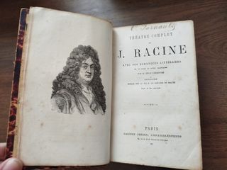 Édition intégrale des œuvres théâtrales de Jean Racine, publiée à Paris en 1871. Edición completa de las obras teatrales de Jean Racine, publicada en París en 1871. - Tapa dura en piel roja con detalles dorados. - Guardas de imitación carey. - Contiene Racine Théâtre y Corneille Théâtre.