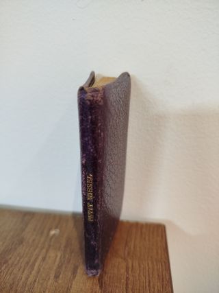 Missel des sept sacrements Turnhout 1905. Son format de poche et sa reliure cartonnée le rendent facile à transporter et à consulter. Malgré son âge, il est en bon état, bien qu'il puisse présenter quelques légères traces d'usage, témoignant de son utilisation antérieure. Cependant, rien n'altère son charme ni sa fonctionnalité. Rédigé en français, il vous permettra de suivre et de vivre pleinement les sept sacrements de l'Église. Publiée par les Éditions Turnhout, cette édition confère une touche d'authenticité à cet ouvrage. Misal de los Siete Sacramentos de Turnhout, 1905. Su formato de bolsillo y su encuadernación de tapa dura