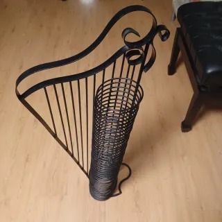Elegante porta CD's con un diseño en forma de arpa. - Fabricado en metal negro. - Diseño abierto y decorativo. - Ideal para organizar tu colección de CDs. Capacidad para 40 CDs Altura 88cm , ancho 40cm
