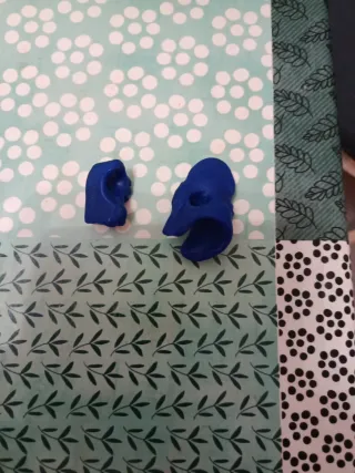 Dos figuras de plástico, una con forma de pez y otra de rana. - Color azul. - Diseño de la marca Arcos.