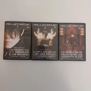 Trilogía de películas de Millennium en formato DVD: - Los hombres que no amaban a las mujeres - La chica que soñaba con una cerilla y un bidón de gasolina - La reina en el palacio de las corrientes de aire