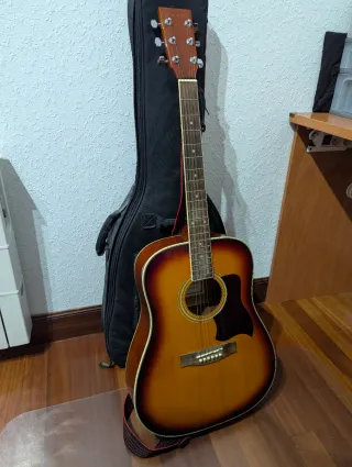 Guitarra acústica Stix en buen estado, lista para tocar. Incluye funda para su transporte y protección. - Color sunburst. - Cuerpo de madera. - Funda negra incluida.