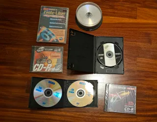 Lote de varios CDs y DVDs, incluyendo un limpiador de lentes láser. - 1 CD-R 100 min regrabable sin estrenar (Harley-Davidson) - 1 CD-R 700 MB 52x regrabable (Fujifilm) sin estrenar. - 2 CD regrabables Think Xtra 100 min. - DVD-R (4 unidades) Fujifilm - Limpiador de lente láser profesional (Pantra) - 13 CD + 5 DVD Verbatim (en caja). Se pueden vender por separado. Consultar.