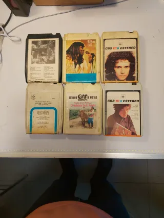 Colección de seis cartuchos de música de los años 70. - Cartucho 1: Pentagon (CBS Records Ltd.) - Cartucho 2: Tina Turner - Cartucho 3: Roberto Carlos Elaino (CBS TC8 ESTEREO) - Cartucho 4: The Themes From RYAN'S DAUGHTER (CBS Records Ltd.) - Cartucho 5: El Violinista En El Tejado (GRAMUSIC 8 PISTAS) - Cartucho 6: Bob Dylan (CBS TC8 ESTEREO)