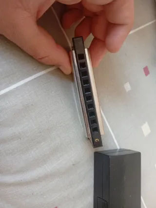 Armónica antigua de color plateado, lista para ser usada. - Diseño clásico y compacto. - Incluye funda protectora negra. A partir de 20 precio negociable.