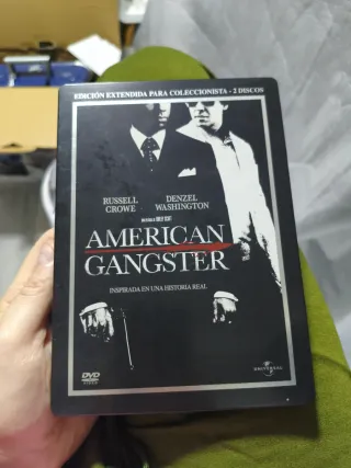 Película American Gangster en formato DVD, edición Steelbook para coleccionistas. - Incluye 2 discos. - Inspirada en una historia real.
