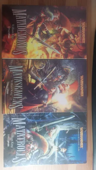 La mejor saga de Warhammer Fantasy, la más emblemática. Una Aventura de Gotrek y Felix. El lote se corresponde a la etapa de William King (Libros 1-7) y la de Nathan Long (Libros 8-12), incluído Matazombies. Matatrolls, segunda edición Mataskavens, cuarta edición Matademonios, segunda edición Matadragones, segunda edición Matabestias, primera edición Matavampiros, primera edición Matagigantes, primera edición Mataorcos, primera edición Matahombres, primera edición Mataelfos, segunda edición Matachamanes, primera edición Matazombies, primera edición Edición de timunmas, en español.