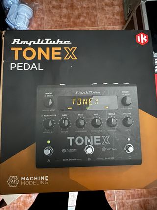 Pedal de modelado de amplificadores y efectos TONEX de IK Multimedia. Diseñado para guitarristas y bajistas. - Tecnología de modelado de IA. - Pantalla digital. - Controles de ganancia, graves, medios y agudos. - Botones de preset y banco.