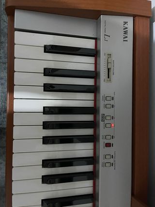 Piano digital Kawai L1 en color madera. - Teclado de 88 teclas. - Diseño elegante y compacto. - Incluye atril. - Incluye funda negra - Tiene 7 teclas ligeramente destensadas (medio milímetro), funcionan todas perfectamente pero se nota al tacto (se puede observar en fotos)