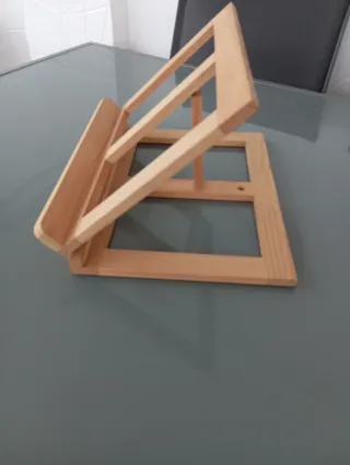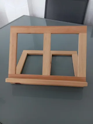Práctico atril de madera, ideal para colocar libros o tabletas. - Diseño sencillo y funcional.