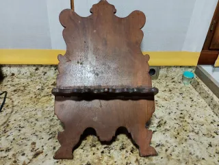Atril de madera con un bonito diseño tallado. - Material: Madera. - Decoración: Tallado floral.
