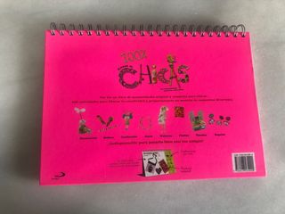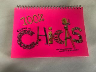 Libro-atril con ideas, instrucciones paso a paso y materiales para crear 100 manualidades divertidas para chicas. Sin uso, solo faltan unas pocas pegatinas de una de las páginas (ver última foto).