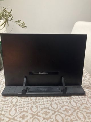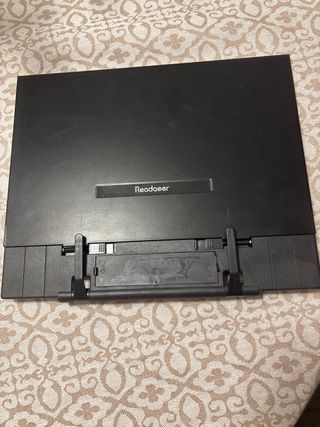 Práctico atril para colocar libros o tablets. Ideal para leer o estudiar cómodamente. - Color negro. - Diseño plegable para fácil transporte y almacenamiento. - Marca: Readaeer.