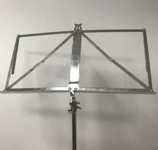 Atril de música con acabado metálico plateado. Altura ajustable. En perfecto estado.