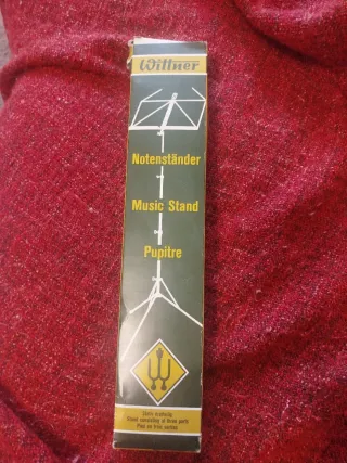 Atril plegable original de la marca alemana Wittner, fabricado en la antigua Alemania Occidental (W. Germany). Modelo metálico de alta calidad, muy difícil de encontrar hoy en día. En muy buen estado. Características: – Construcción totalmente en metal, robusta y sin piezas de plástico. – Sistema de articulación fuerte y estable. – Extensible, permite colocar hasta 4 páginas de partitura a la vez. – Altura regulable. – Trípode metálico muy estable, apto incluso para carpetas grandes. – Plegado compacto (aprox. 30 cm).