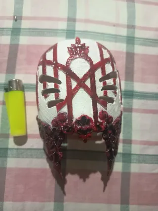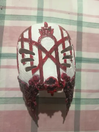 Máscara inspirada en Sleep Token, impresa en 3D.(No es tamaño real) - Diseño detallado. - Acabado blanco con detalles en rojo.