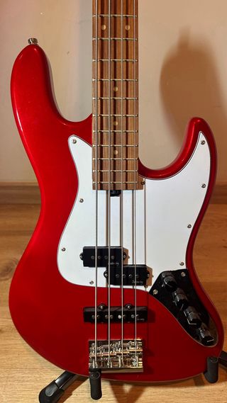 Bajo eléctrico Sadowsky Metroexpress de 4 cuerdas en color rojo brillante. Un instrumento versátil y de gran calidad. Bajo activo, con previo muy potente. Comprado en 2025, prácticamente sin usar. No tiene ningún defecto. Vendo por falta de espacio. Modelo sin logo de Sadowsky de la época cuando tenían problemas de copyright en China. Es el mismo bajo que se vende por 900€ ahora.