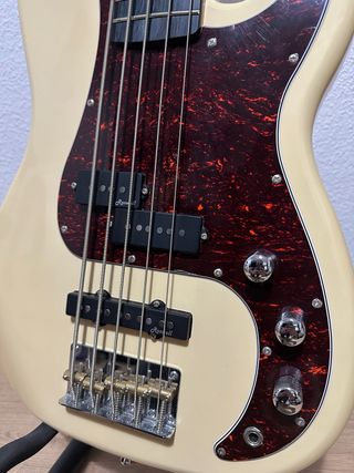Bajo eléctrico Harley Benton de 5 cuerdas con un acabado en crema y golpeador tortuga. PJ75VW - Cuerpo de madera de alamo. - Mástil de arce. - Pastillas Roswell J-Style y JBA Alnico-5 Single Coilso 140 o cambio por bajo 4 cuerdas