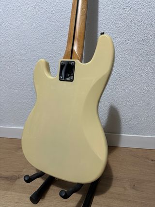De finales de los noventa, hecho en Taiwán. A ESTRENAR, tiene incluso el plástico de la tapa trasera. Por 330 euros te llevas una BESTIA. Lo vendo porque solo me estoy quedando con bajos tipo Stingray y me lo dieron como parte de pago en otra venta. Pesa menos de 4kg, suena tremendo y con buena salida siendo pasivo, es super cómodo y se nota de muy muy buena calidad. Trastes perfectamente rematados. El diapasón es de palisandro, el mástil de arce. Lo envío por Wallapop Pay.