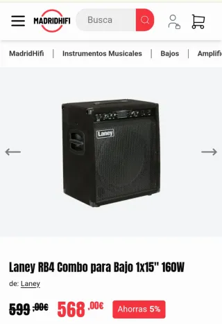 Amplificador de bajo marca Laney, modelo RB4. - Ecualizador gráfico. - Conexión XLR DI Out. - Asa superior para transporte.