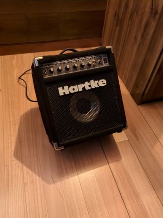Amplificador de bajo Hartke A25. - Ecualizador de 3 bandas. - Control de brillo. - Limitador integrado. - Entrada de CD. - Salida de auriculares. El potenciómetro del volumen hace ruidos, habría que mirarlo, parece suciedad interna/mal contacto.